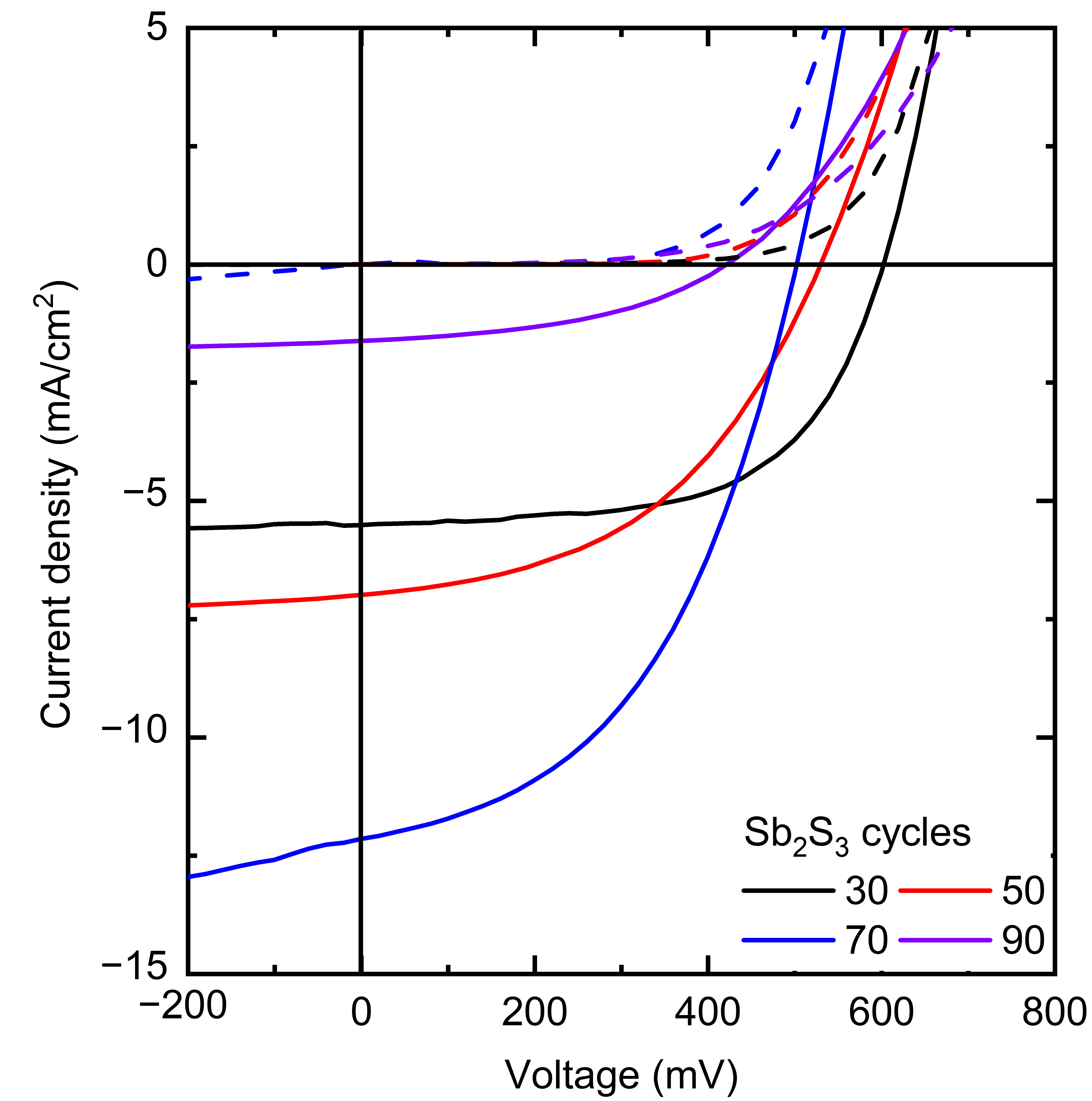 2, an open-circuit voltage of 502 mV, and a photovoltaic conversion efficiency of 2.83% is obtained for an intermediate thickness of the Sb