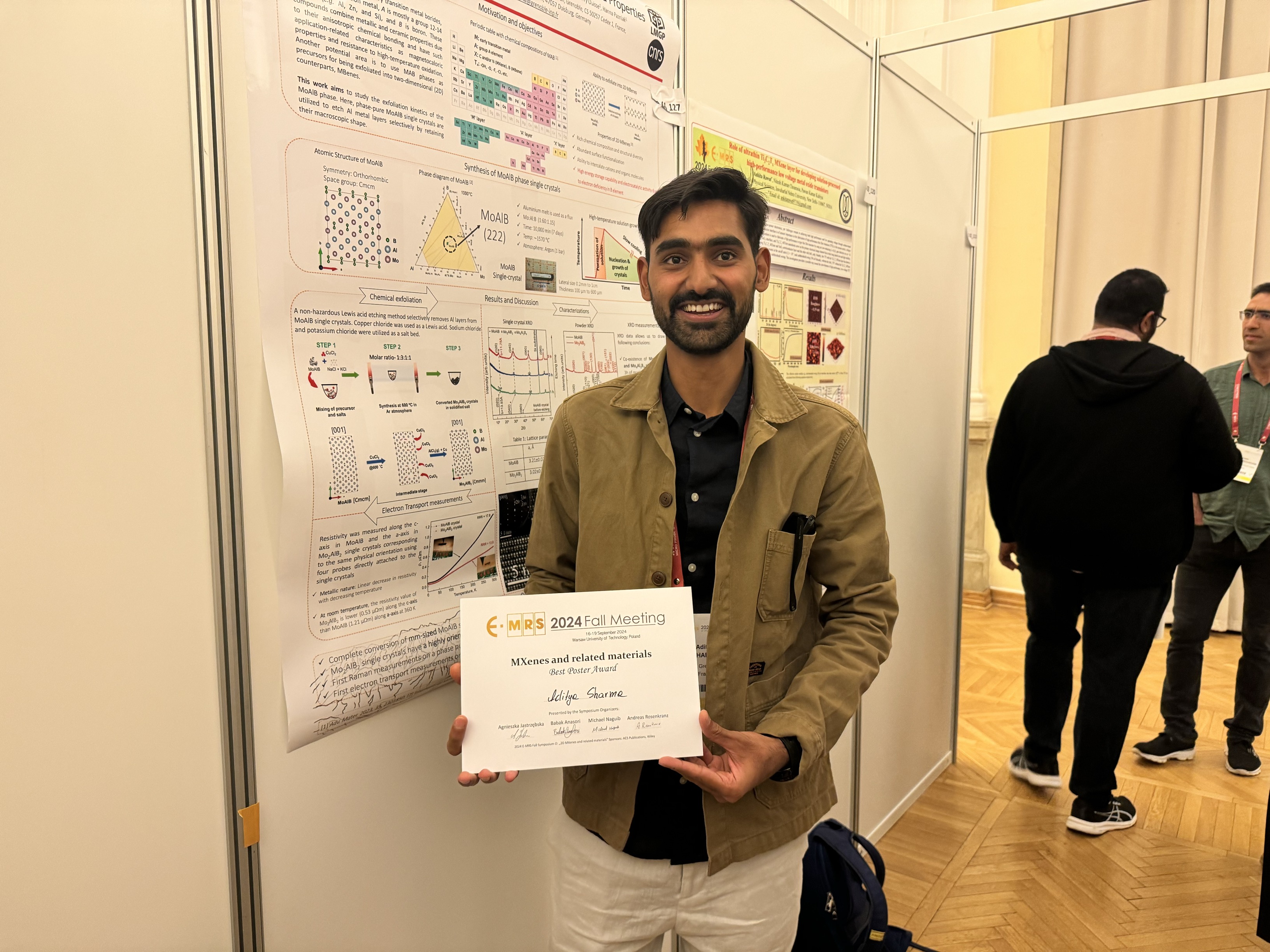 Le poster présenté par Aditya Sharma au Symposium M-Xènes and Related Materials lors du E-MRS Fall 2024 à Varsovie, a été primé.