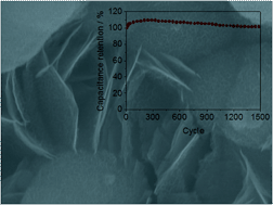 "Nickel manganese (Ni–Mn) oxide films were prepared by potentiostatic electrodeposition over stainless steel and post-thermal annealing at 250 °C. Morphological and structural changes were observed depending on the Ni to Mn ratio in the electrolyte. Single-phase Ni1-xMnxO oxide was formed at low Mn content, whereas two phases composed of Ni1-xMnxO and NixMn3-xO4 were formed at high Mn content. Electrochemical studies revealed an increase of the specific capacitance of the mixed Ni–Mn oxide electrodes compared to the single metal oxides, thus pin-pointing a synergistic effect. The Ni–Mn oxide film displayed a specific capacitance of about 300 F g-1 in a potential window of 0.5 V at an applied current density of 1 A g-1. The rate capability of the oxides was 58% when the applied current was increased from 1 A g-1 to 10 A g-1. The Ni–Mn oxide film exhibits excellent cycling stability with 100% capacitance retention after 1500 cycles." DOI: 10.1039/C5TA01453K