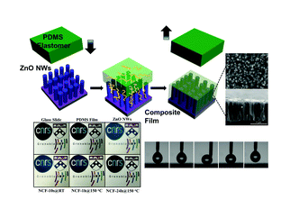 "Nanocomposite films (NCFs) with vertically aligned nanowires (NWs) provide several useful properties owing to their unique morphology. One of the key challenges in producing such an NCF is retaining the vertical alignment of NWs during NCF fabrication. Although current methods such as layer-by-layer assembly and solution-based processes with field-induced alignment of NWs have been successfully demonstrated, these approaches require multiple steps thus are time-consuming, and only suitable for lab-scale production, consequently limiting their widespread applicability. Herein, we describe a new method for fabricating an NCF with vertically aligned ZnO NWs by inducing leaching-enabled capillary rise infiltration (LeCaRI) of uncross-linked and mobile oligomer chains from a poly(dimethylsiloxane) (PDMS) slab into the space between the vertically aligned ZnO NWs. PDMS-infiltrated ZnO NW NCFs have a suite of useful properties including superhydrophobicity, self-cleaning, solvent resistance, and anti-icing properties as well as high transparency and anti-reflection properties. The NCF can easily recover its superhydrophobicity after it has been compromised through repeated plasma treatments or even exposure to intense UV irradiation. Moreover, our approach represents a straightforward, efficient, and potentially scalable strategy to produce multifunctional NCFs with vertically aligned NW arrays which could be easily extended to other types of materials and NW arrangements toward a wide range of properties and applications"