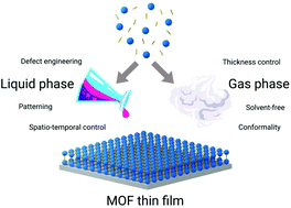 "Metal–organic framework (MOF) thin films represent a milestone in the development of future technological breakthroughs. The processability of MOFs as films on surfaces together with their major features (i.e. tunable porosity, large internal surface area, and high crystallinity) is broadening their range of applications to areas such as gas sensing, microelectronics, photovoltaics, and membrane-based separation technologies. Despite the recent attention that MOF thin films have received, many challenges still need to be addressed for their manufacturing and integrability, especially when an industrial scale-up perspective is envisioned. In this brief review, we introduce several appealing approaches that have been developed in the last few years. First, a summary of liquid phase strategies that comprise microfluidic methods and supersaturation-driven crystallization processes is described. Then, gas phase approaches based on atomic layer deposition (ALD) are also presented.."