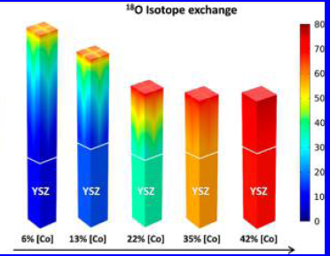 "Ion transport in solid-state devices is of great interest for current and future energy and information technologies. A superior enhancement of several orders of magnitude of the oxygen diffusivity has been recently reported for grain boundaries in lanthanum–strontium manganites. However, the significance and extent of this unique phenomenon are not yet established. Here, we fabricate a thin film continuous composition map of the La0.8Sr0.2(Mn1–xCox)0.85O3±? family revealing a substantial enhancement of the grain boundary oxygen mass transport properties for the entire range of compositions. Through isotope-exchange depth profiling coupled with secondary ion mass spectroscopy, we show that this excellent performance is not directly linked to the bulk of the material but to the intrinsic nature of the grain boundary. In particular, the great increase of the oxygen diffusion in Mn-rich compositions unveils an unprecedented catalytic performance in the field of mixed ionic–electronic conductors. These results present grain boundaries engineering as a novel strategy for designing highly performing materials for solid-state ionics-based devices."