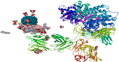 "This study describes the fabrication of an aflatoxin (AFB1) electrochemical immunosensor by immobilization of an anti-AFB1 antibody-bovine serum albumin (BSA) conjugate on a layer of L-cysteine (L-Cys) used to link the antibody to the palladium nanoparticle-boron nitride (PdNP-BN)-modified carbon felt (CF) electrode. Each step of the immunosensor fabrication was characterized using cyclic voltammetry (CV) and electrochemical impedance spectroscopy (EIS). These two analyses demonstrated that BN acted as a substrate for PdNPs and also as an electroactive material that enhanced the immunosensor electrical conductivity. Different features (antibody concentration, pH, incubation time) were optimized to enhance the immunosensor analytical performance. In these conditions, the fabricated immunosensor displayed a large linear range (1–10 ng mL−1; R2 = 0.9987), low limit of detection (0.834 ng mL−1 AFB1), and was stable for up to 3 weeks. The fabricated electrochemical immunosensor could detect AFB1 in wine samples with recovery levels of 93–106%. Lastly, the Monte Carlo simulation studies confirmed the stronger binding of the anti-AFB1 antibody-BSA conjugate to the L-Cys/PdNP-BN/CF electrode surface, and molecular docking confirmed the docking of BSA subdomain II to the anti-AFB1 antibody.."