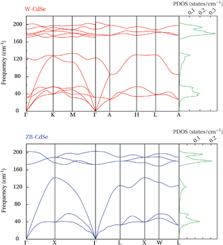 Raman spectra of epitaxial layers of CdSe grown by molecular beam epitaxy have been measured for the cubic (zincblende) and hexagonal (wurtzite) phases. The Raman spectra are examined in the light of density functional calculations for these two highly similar structures. Characteristic Raman frequencies and spectral features associated with the different symmetry are discussed and reliable criteria for phase discrimination based on Raman spectroscopy are proposed. Although LO frequencies are virtually identical in both structures and may be affected by size effects, the observation of a low energy E2 mode at 33 cm−1 unambiguously identifies the wurtzite structure and can be used as a specific fingerprint to distinguish between these two phases in CdSe-based nanostructures. The slightly lower LO frequency measured in the zincblende epitaxial layer is ascribed to residual tensile strain.