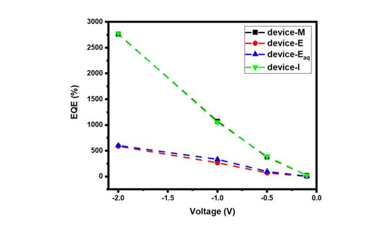 "This work reports on the fabrication of ZnO polymer-based hybrid ultraviolet (UV) photodiodes with a configuration of ITO/ZnO-nanorod/F8BT/PEDOT:PSS/Ag. The diode was fabricated by spin-coating p-type F8BT and PEDOT:PSS polymers on hydrothermally grown n-type ZnO nanorods. The growth of ZnO nanorods was carried out by varying seed layer alcohols, viz., methanol, ethanol, isopropanol, and aqueous ethanol (70% alcohol). These solvents influenced the nanorod diameter, surface coverage, and surface defects. Herein, we demonstrate that the uniformity and defects in ZnO nanorods govern the electrical properties, photoresponse, and figures of merit of the photodiodes. In particular, the photodiodes are evaluated on their rectification ratio, ideality factor (η), responsivity (R), external quantum efficiency (EQE), and response time (Tdecay). The photodiode fabricated with ZnO nanorods grown on the methanol seeding layer has demonstrated the best performance, owing to the uniform surface coverage of the nanorods. It also presented the highest rectification ratio of ∼640, a Tdecay of 108 s, a η of 2, an EQE of ∼2760%, and an R of ∼8.14 A/W at −2 V."