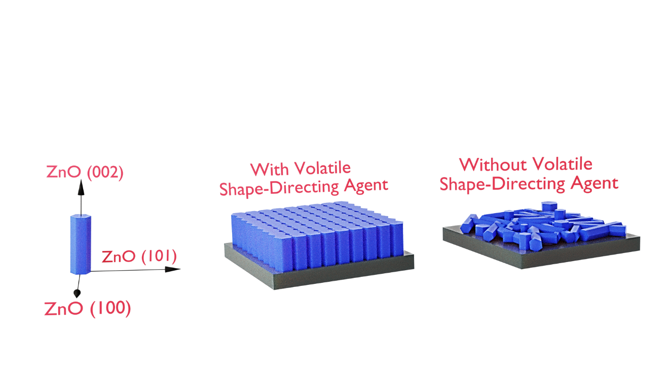 "Many functional devices are nowadays based on thin films deposited by physical or chemical vapour deposition methods. Being able to control the texture of the films is very important to tune their functional properties. Texture is commonly tuned by either using single crystalline substrates or seed layers, or by modifying the deposition parameters (gas flows, precursor concentration, temperature, etc.). In this study a volatile shape-directing agent (VSDA), namely 4- (5)-Methylimidazole (4- (5)-MeIM), is used during the deposition of ZnO thin films by Atmospheric-Pressure Spatial Atomic Layer Deposition (AP-SALD) to control the texture and growth rate of the films. In particular, ZnO thin films can be grown preferentially along (002), resulting in an enhanced piezoelectric coefficient. In addition, the polarity of the ZnO films also depends on the amount of VSDA used. An innovative industry-compatible approach to control texture and polarity of ZnO thin films is presented, having a clear potential for other functional materials and applications."